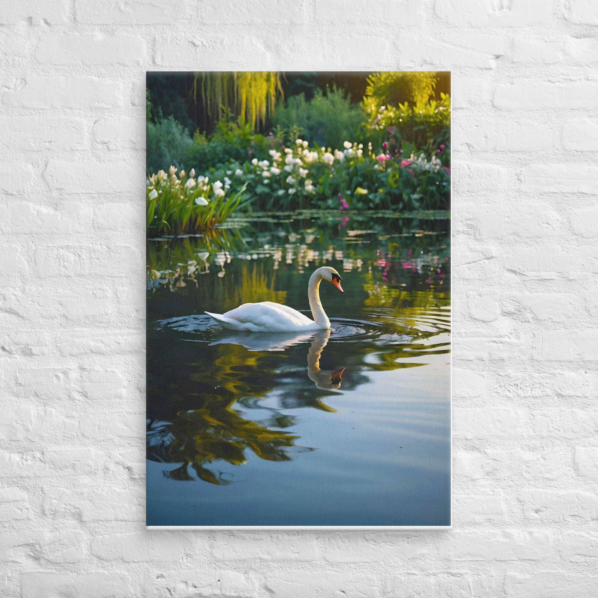 Swan Swimming In Pond Wall Art Canvas
